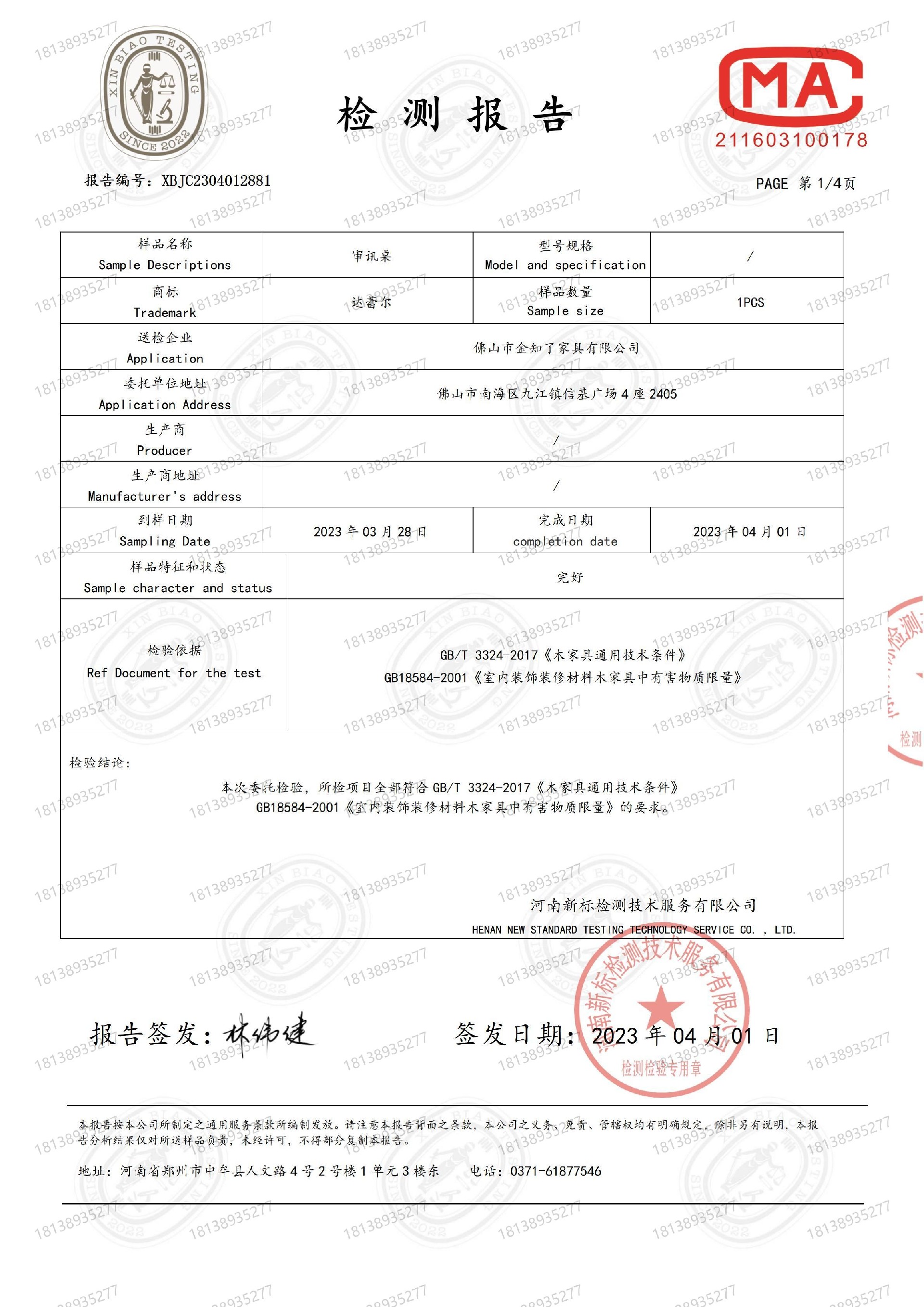 审讯桌质检报告