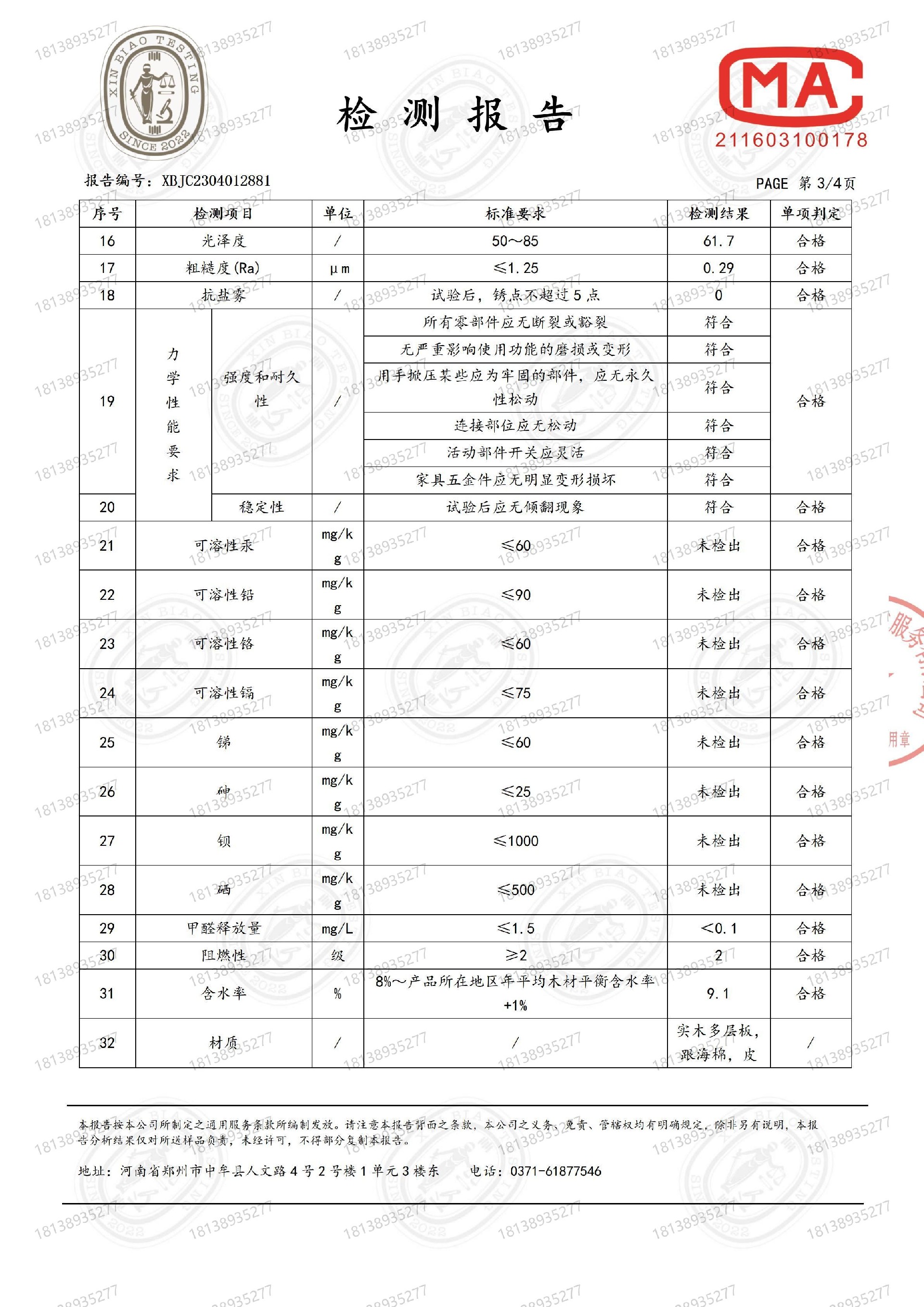 审讯桌质检报告